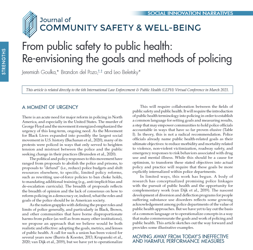 From public safety to public health: Re-envisioning the goals and methods of policing